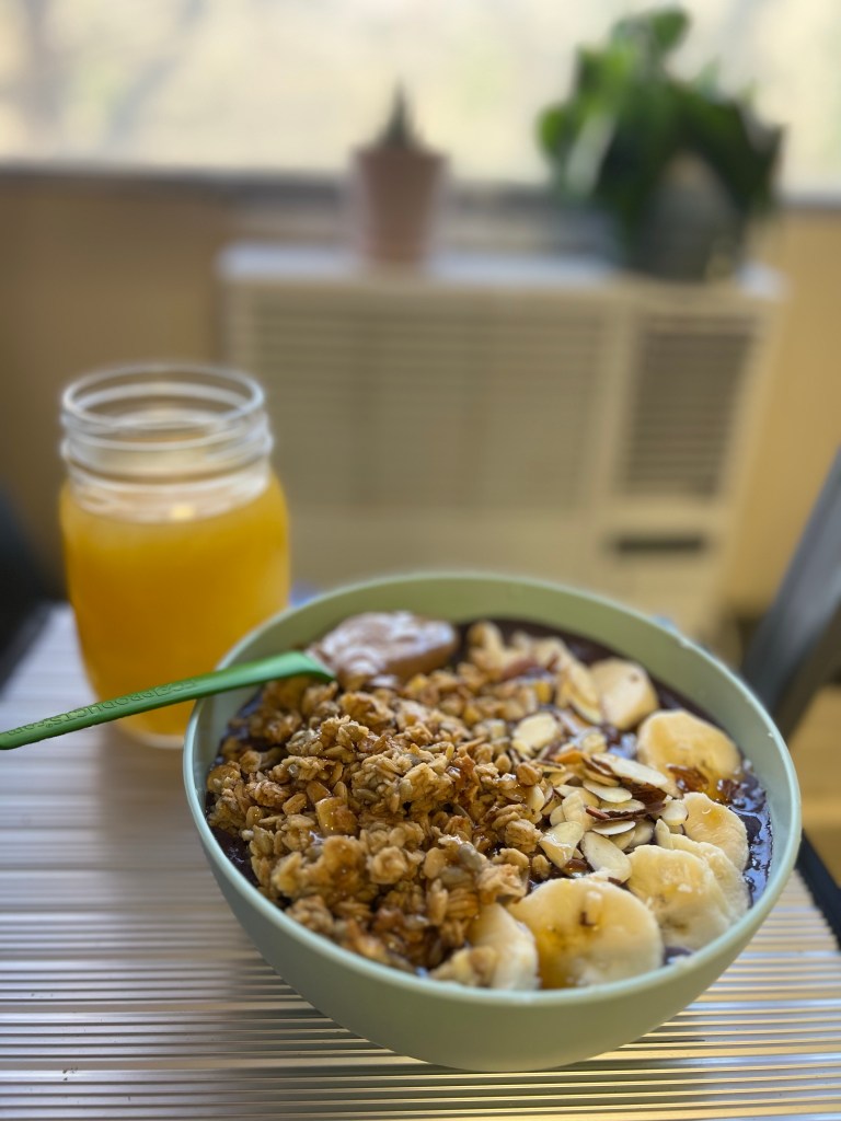 These smoothie bowls are super easy and have honestly become a form of self-care. The only annoying thing is the dishes situation, but I am lucky to have a community kitchen that makes doing dishes relatively easy. I hope you find them as delicious as I do!
